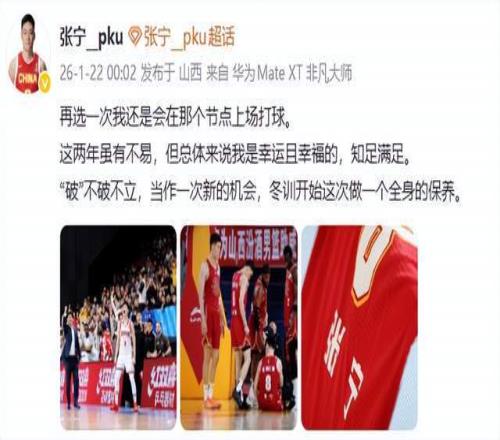 作为当事人,张宁随后发文写道:“再选一次我还是会在那个节点上场打球。这两年虽有不易,但总体来说我是幸运且幸福的,知足满足。‘破’不破不立,当作一次新的机会,冬训开始这次做一个全身的保养。 ”